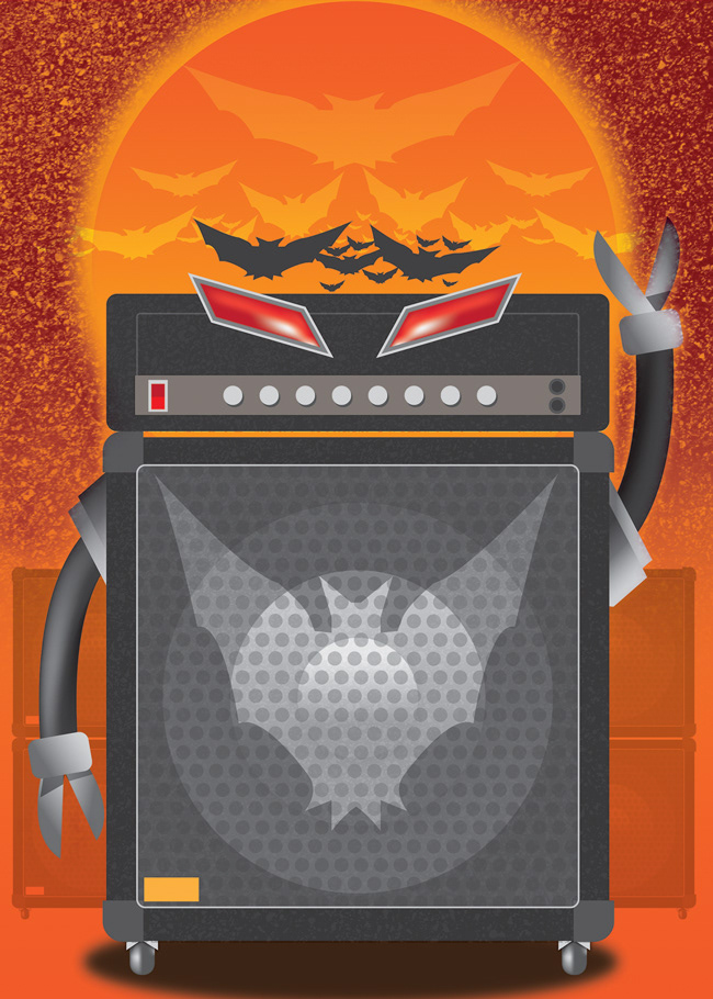 A fun illustration project for a Halloween flyer. Combining simple, flat illustration, with a Halloween color scheme to create a piece of art with an arcade game and heavy metal bent.